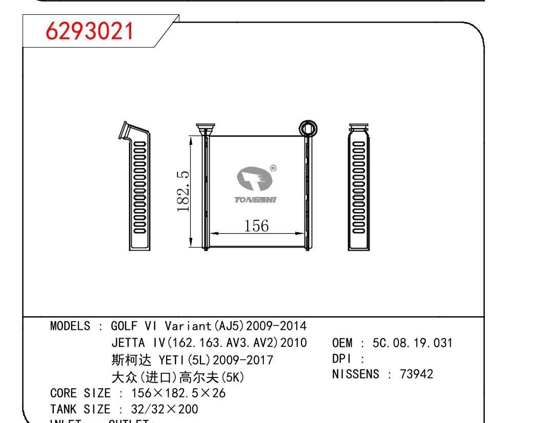 • GOLF VI Variant(AJ5)2009-2014/JETTA IV(162.163.AV3.AV2)2010/斯柯?? YETI(5L)2009-2017/大众(进口)高尔??(5K)