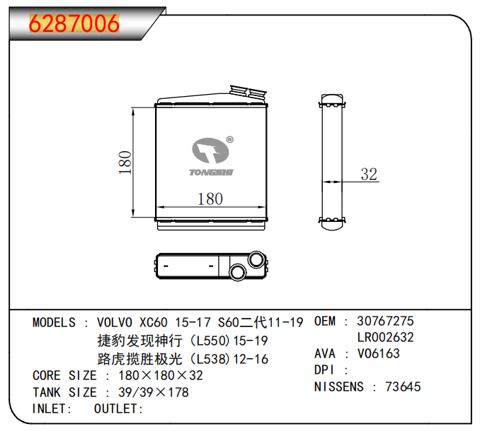 适用于沃尔沃V40 1.9TD D4192T 95- MT散热器