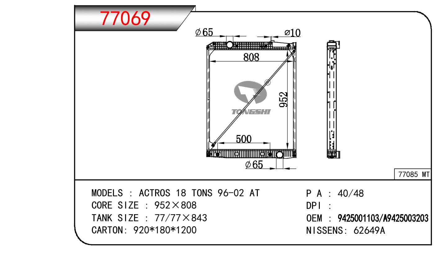 适用于奔驰?ACTROS?18?TONS?散热器OEM:9425001103/9425001703/9425003103/9425003203/9425003303/A9425001103/A9425001703/A9425003103/A9425003203/A9425003303