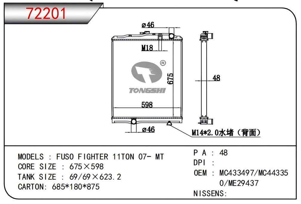 适用于FREIGHTLINER CASCADIA 125/ 113 L6 12.8L 12-13 AT散热器
