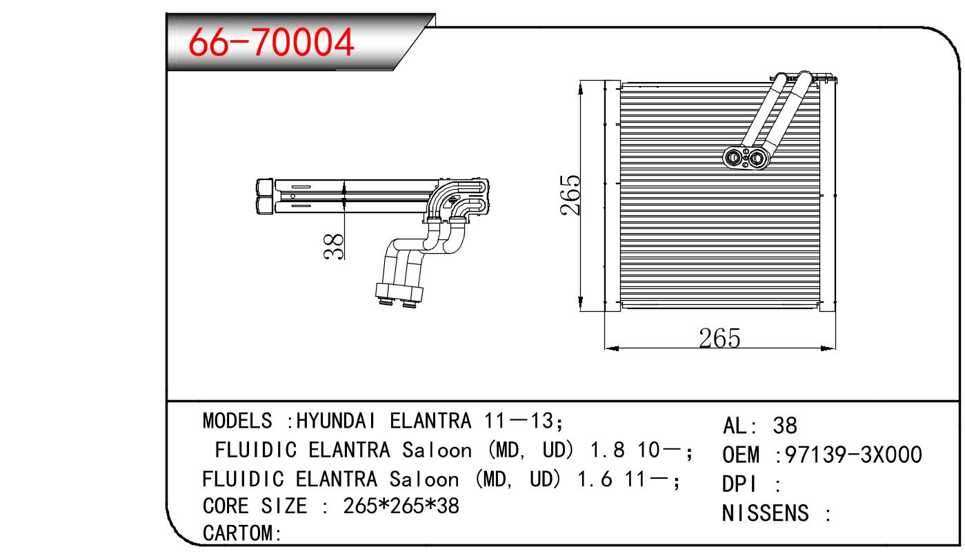 适用于现代 ELANTRA 11-13/FLUIDIC ELANTRA Saloon (MD, UD) 1.8 10-/FLUIDIC ELANTRA Saloon (MD, UD) 1.6 11-/ OEM:97139-3X000