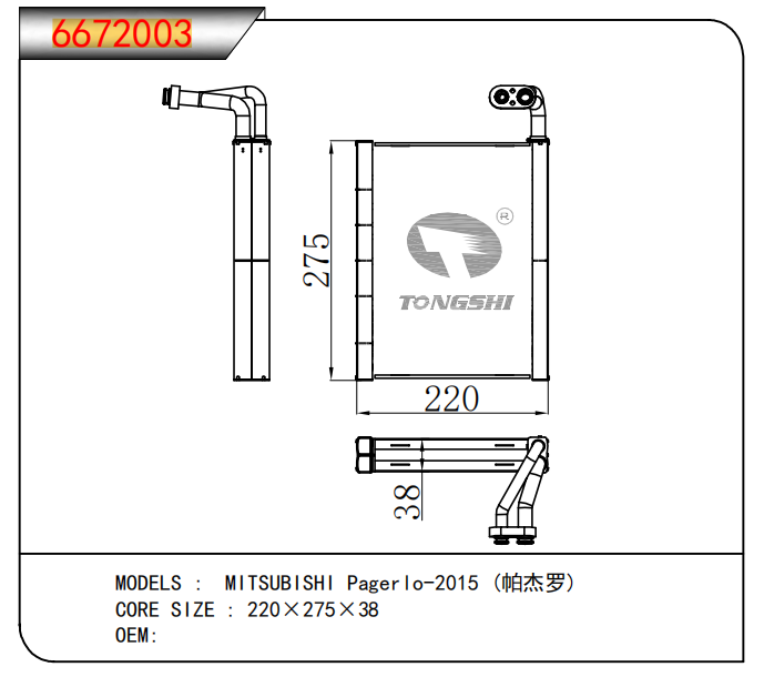 适用于奇瑞瑞虎(新款)?MT散热器