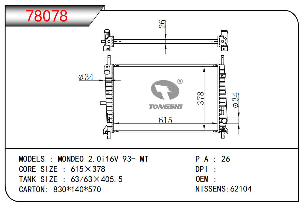 适用于沃尔沃V40 1.9TD D4192T 95- MT散热器