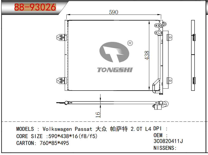 适用于沃尔沃V40 1.9TD D4192T 95- MT散热器