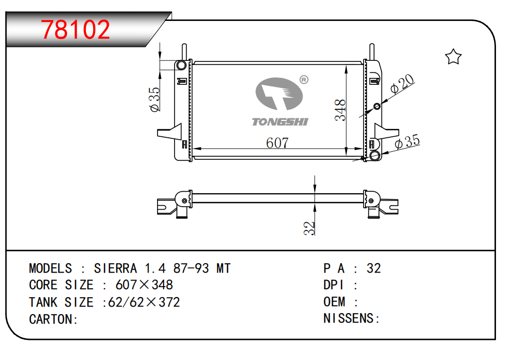适用于沃尔沃V40 1.9TD D4192T 95- MT散热器