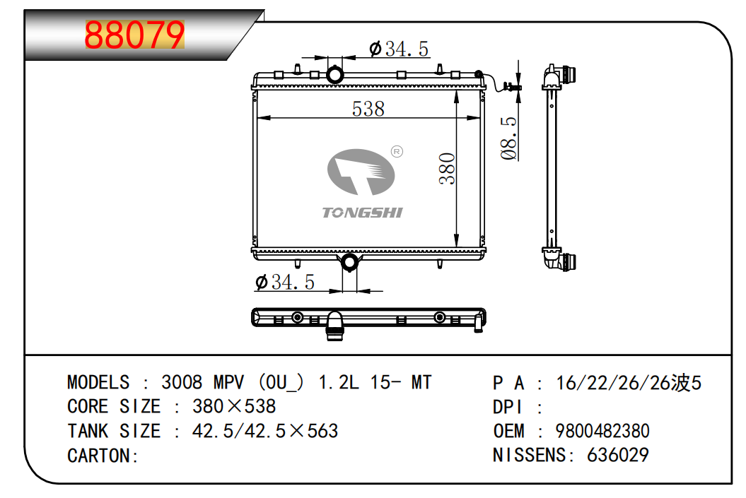 适用于沃尔沃V40 1.9TD D4192T 95- MT散热器