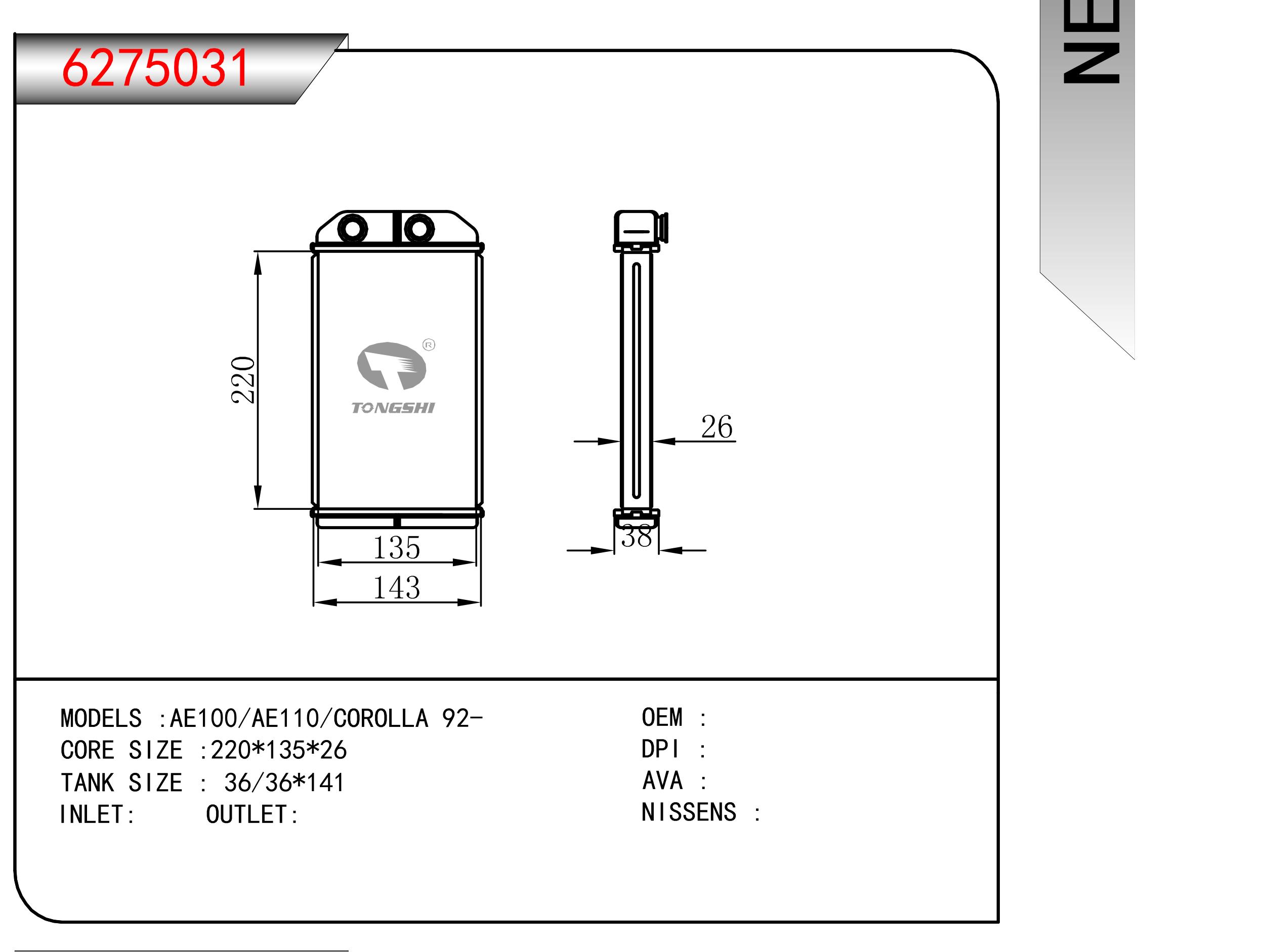 适用于沃尔沃V40 1.9TD D4192T 95- MT散热器
