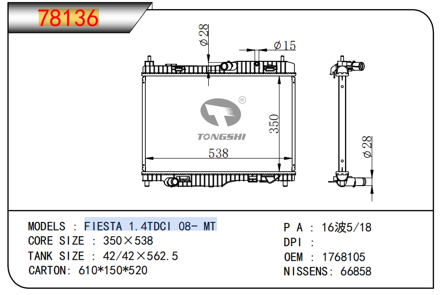 适用于沃尔沃V40 1.9TD D4192T 95- MT散热器