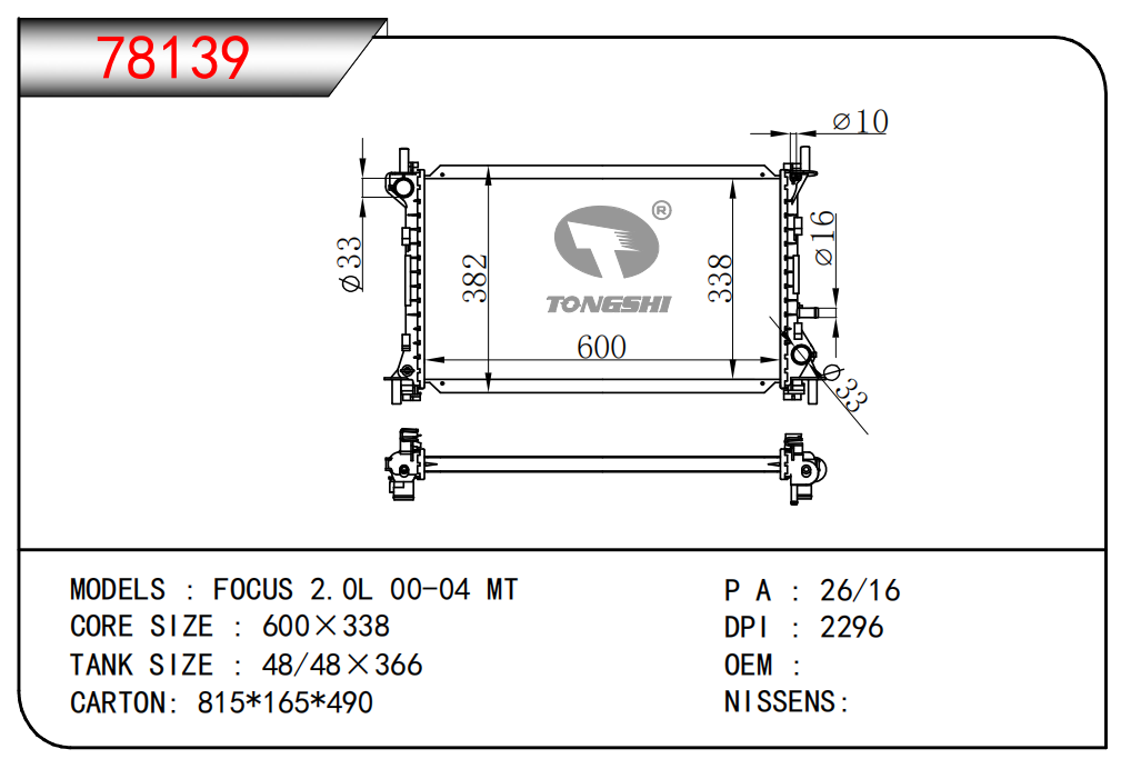 适用于沃尔沃V40 1.9TD D4192T 95- MT散热器