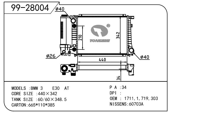 适用于BMW宝马 宝马 3系(E30) OEM:1.719.303/1.719.305/1711.1.719.303/1711.1.719.305/17111712979/1711.1.7129.839