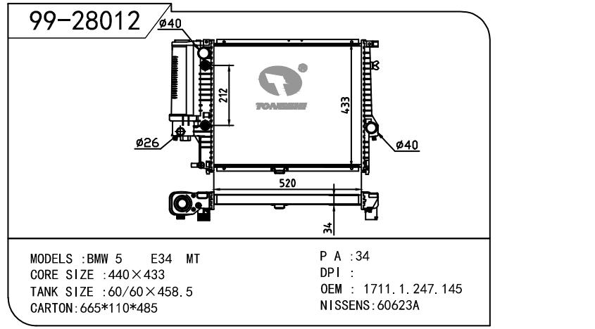 适用于BMW宝马 宝马 5系(E34) OEM:1.468.469/1.719.309/1711.1.468.469/1711.1.719.309/1719142/1723527