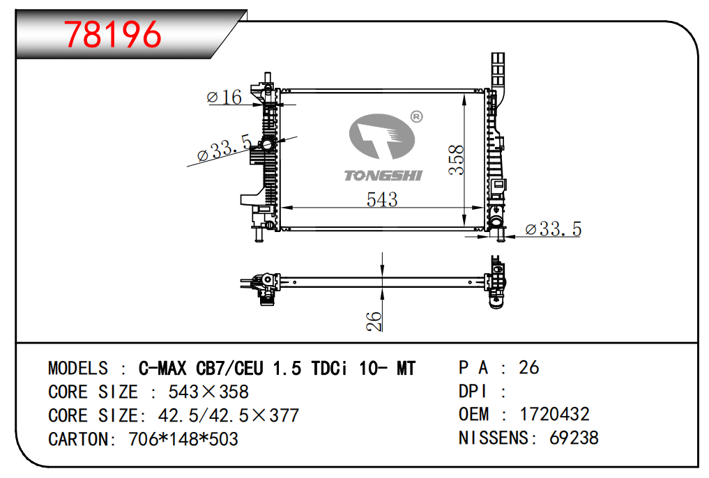 适用于沃尔沃V40 1.9TD D4192T 95- MT散热器