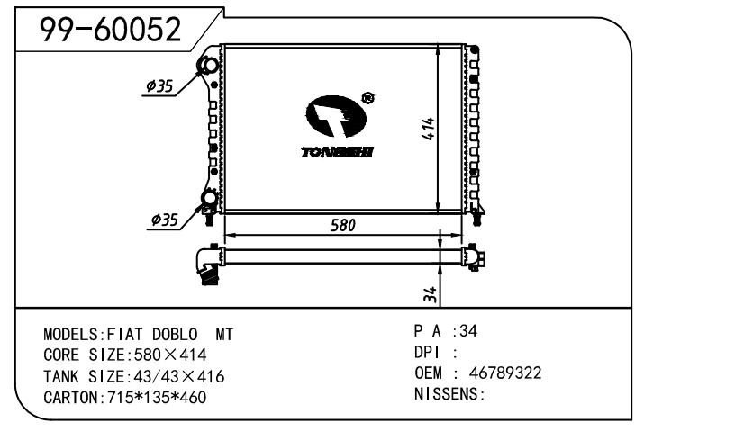 适用于沃尔沃V40 1.9TD D4192T 95- MT散热器