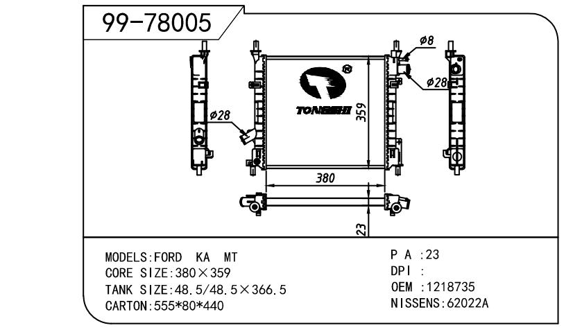 适用于FORD 福特 福特 STREET KA OEM:1218735/1S5H8005CB/3S5A8005AA/1S5H8005CA/1S5H-8K161-AA/1221061/1361842/1S5H8005AA/3S5A8005CB/1222478