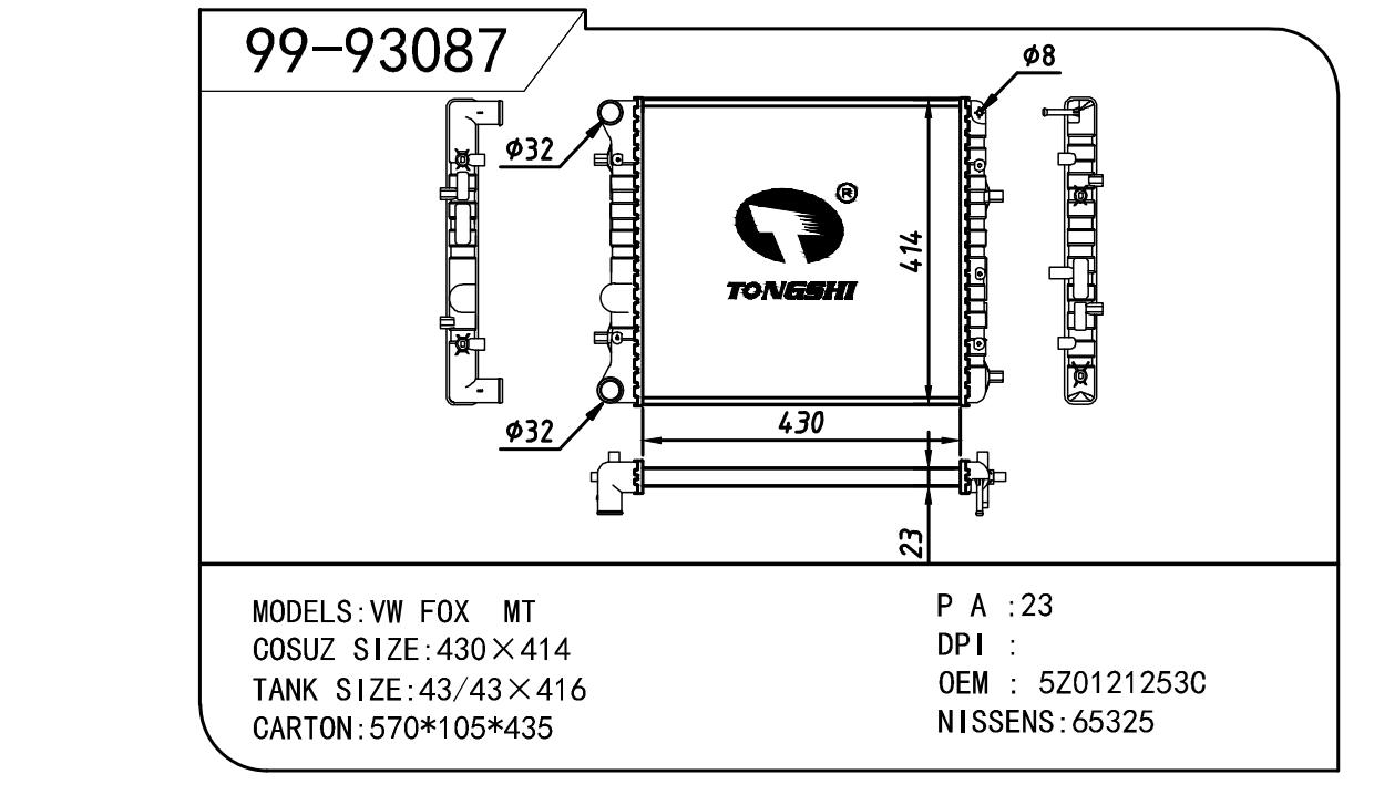 适用于沃尔沃V40 1.9TD D4192T 95- MT散热器