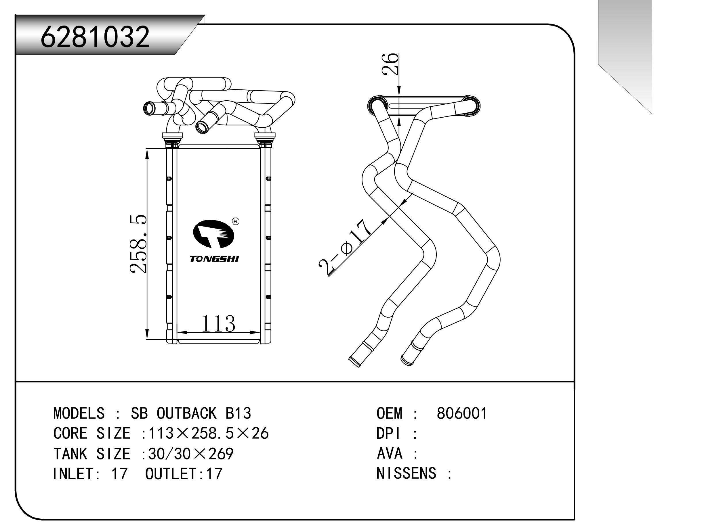 适用于沃尔沃V40 1.9TD D4192T 95- MT散热器