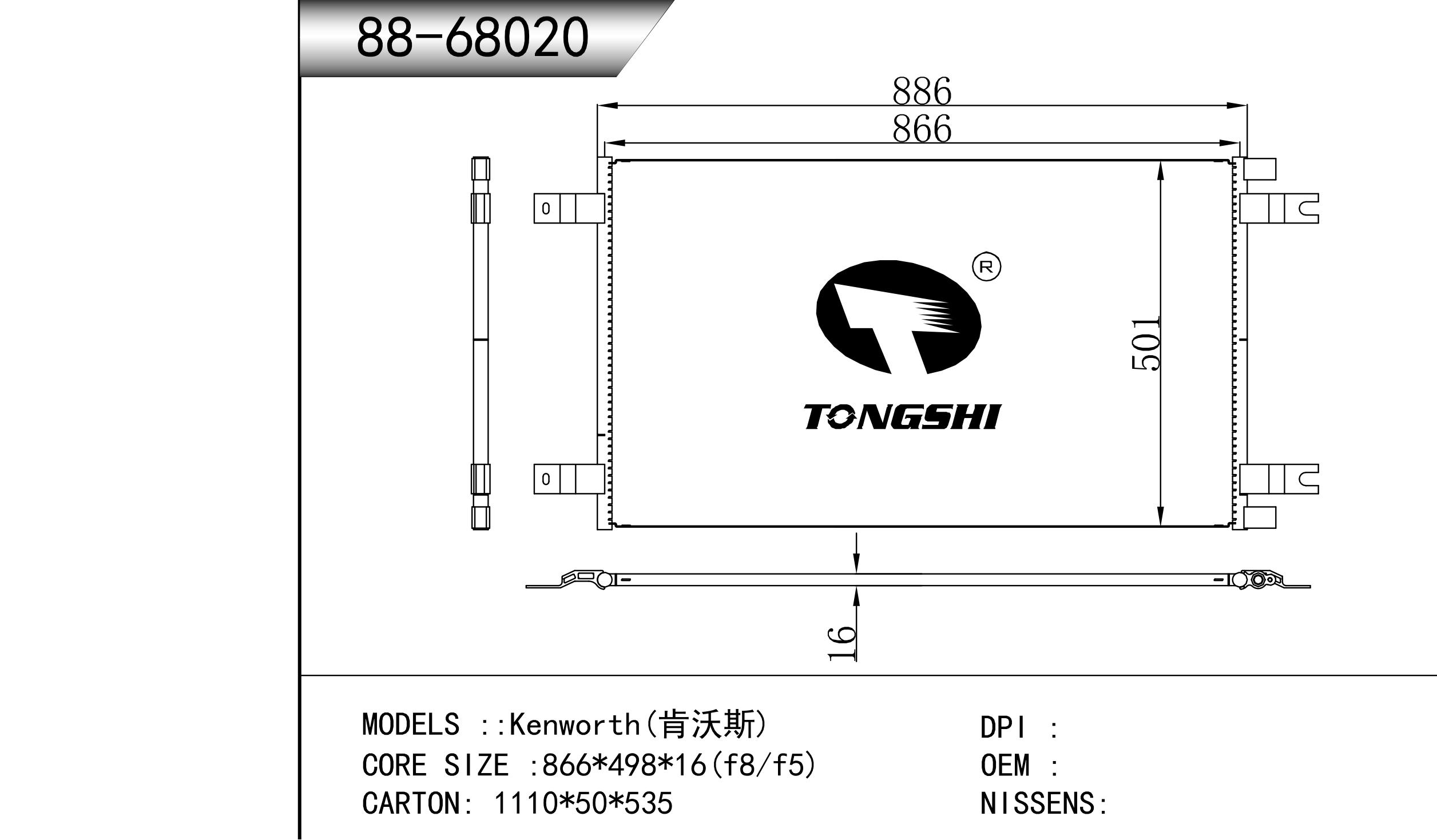 适用于FREIGHTLINER CASCADIA 125/ 113 L6 12.8L 12-13 AT散热器
